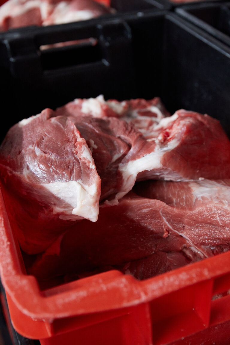 La sélection des matières premières joue un rôle fondamental dans l’élaboration de nos produits. Exit la viande surgelée, nous sélectionnons des pièces soigneusement triées (épaule, bardière, jambon, échine, poitrine) et rigoureusement tracées, provenant exclusivement d’élevages français et principalement du Massif Central.